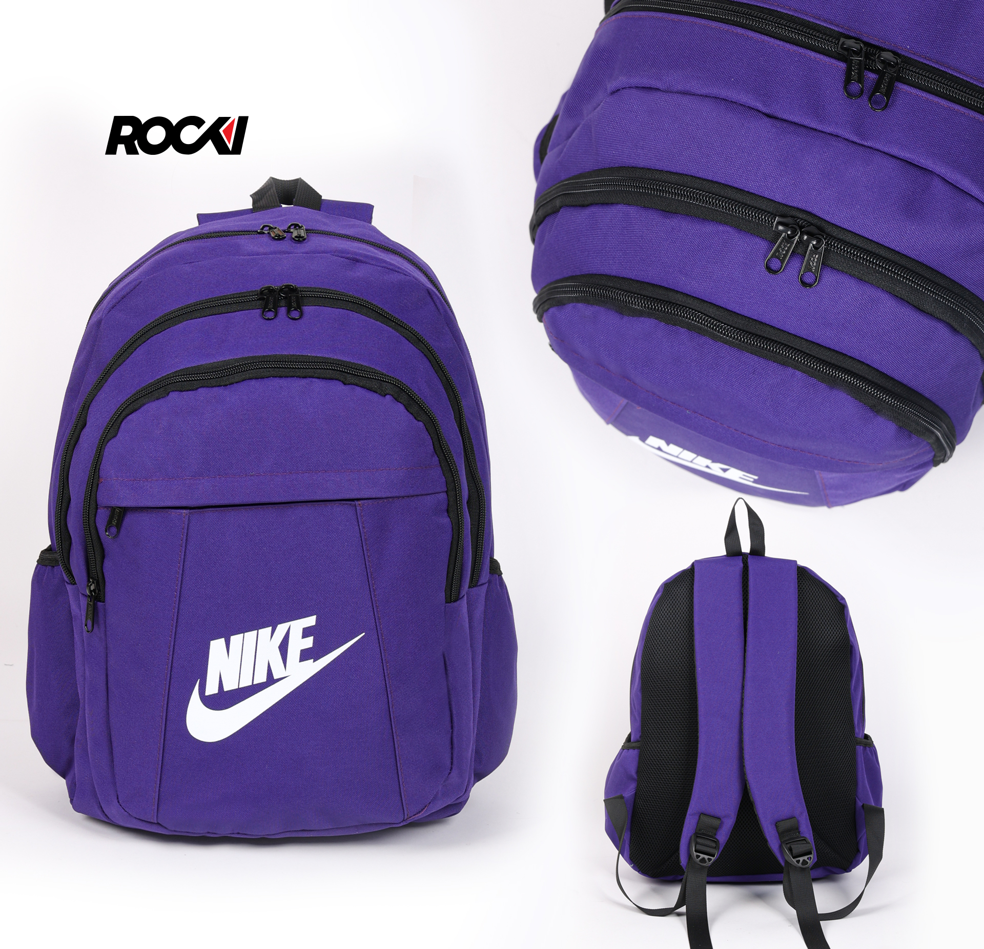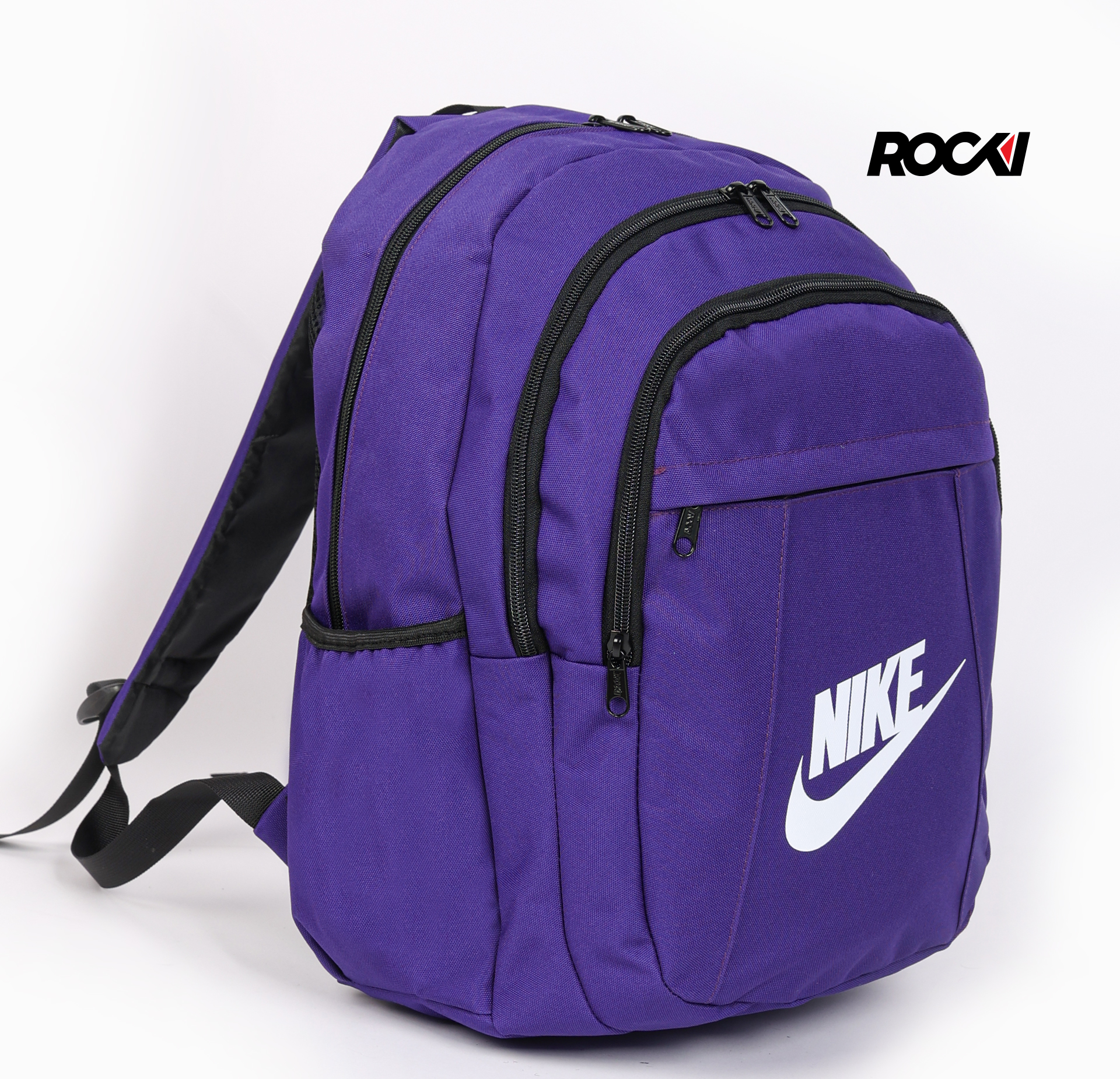 - شعار Nike الأيقوني: يزين الواجهة الأمامية بشكل بارز ومميز، ليضيف لمسة من الأصالة الرياضية والاعتراف بالجودة العالمية، بينما يؤكد شعار Rocki على جودة التصنيع. ✨